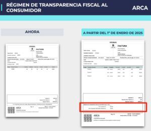 La Administración de Control y Recaudación Fiscal (ARCA) oficializó un nuevo régimen de claridad tributaria, que entrará en vigor el 1 de enero de 2025. En esta primera instancia, se exigirá a las principales empresas que detallen el IVA y otros tributos indirectos en los comprobantes emitidos a consumidores.
